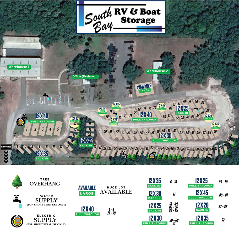 Please Note: Our minimum storage period is 3 months. Please note that our spaces are 12' wide and will accommodate up to a 9'-6" wide trailer, boat or RV. If the overall width of your trailer, boat, or RV is over 9'-6" wide, then you will be required to rent two spaces side by side.